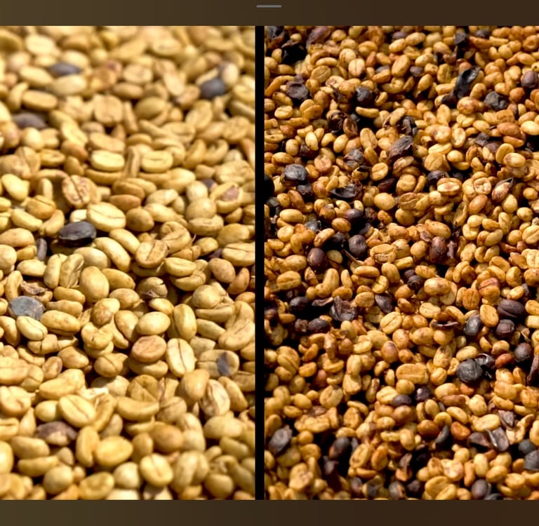 Während die Kaffees verarbeitet werden, haben sie immer noch eine dicke Pergamentschicht um die eigentliche Bohne, welche wir später rösten. Diese wird erst beim Dreschen entfernt, wenn der Kaffee exportfertig ist.