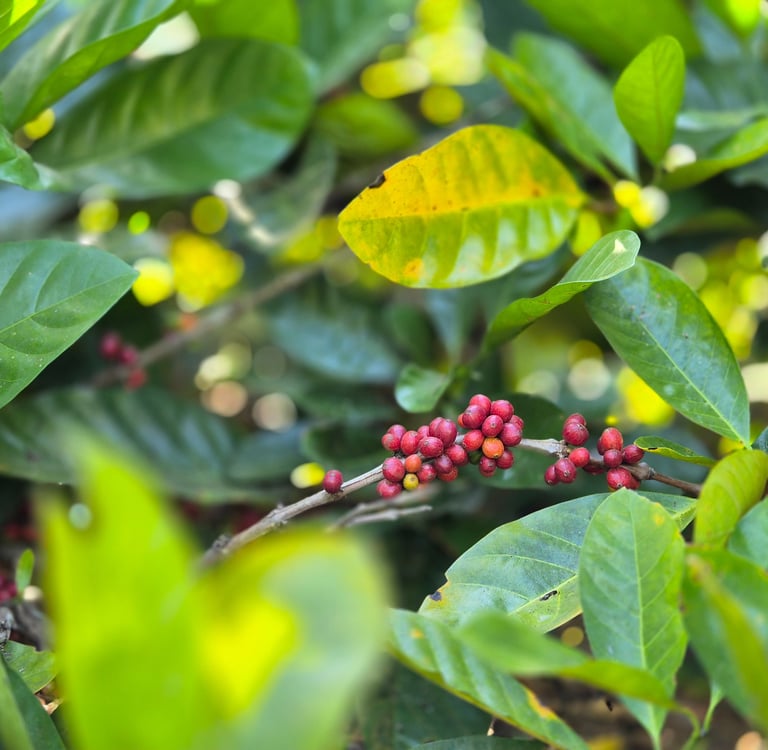 Dieser größeren genetischen Vielfalt verdanken wir das breite Aromenprofil, von fruchtigen, blumigen, kräutrigen über schokoladige und nussige Noten finden wir alles in Arabica.